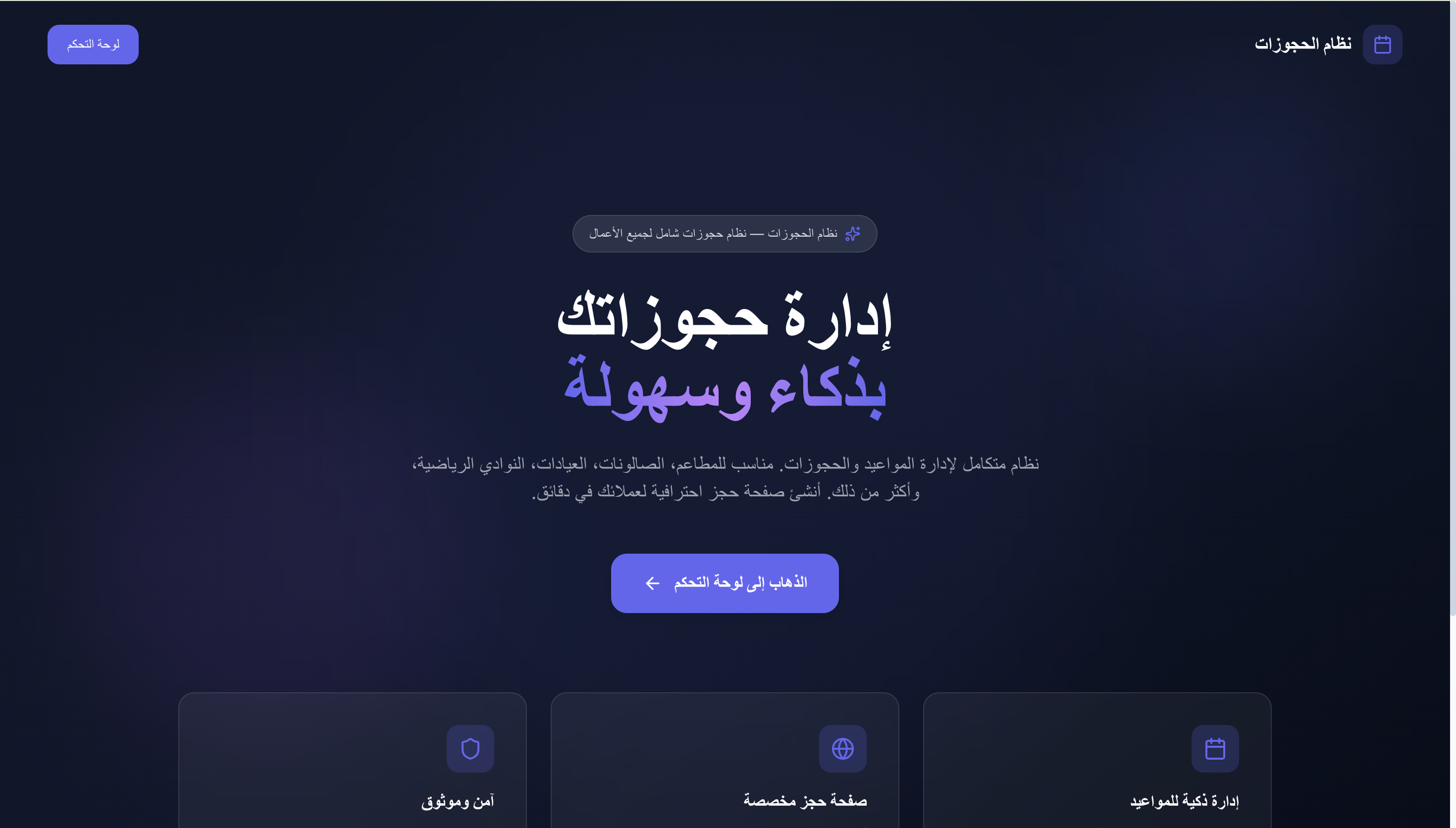 منصة حجز مواعيد احترافية للشركات والخدمات مع لوحة تحكم كاملة وإدارة المواعيد.